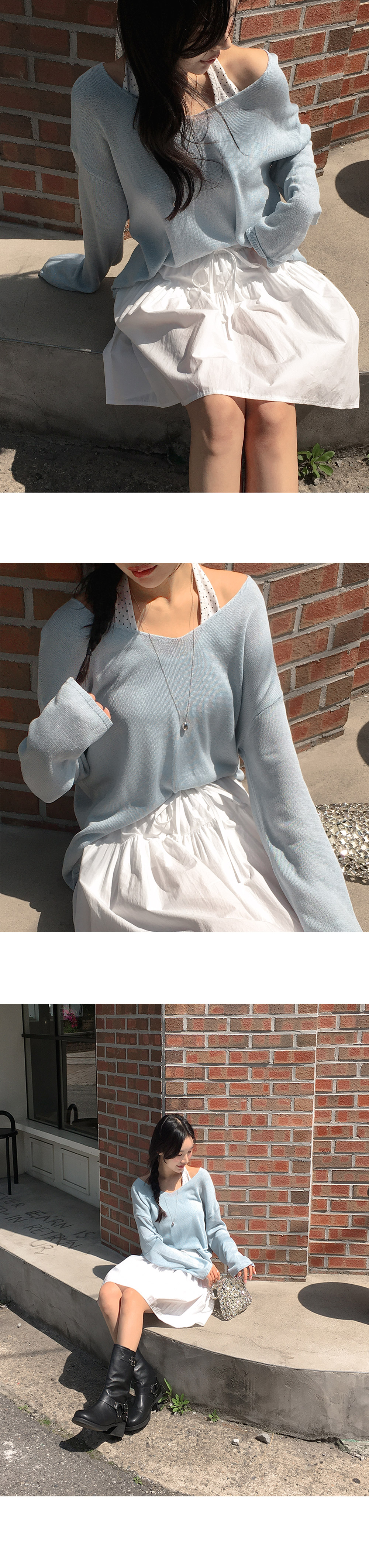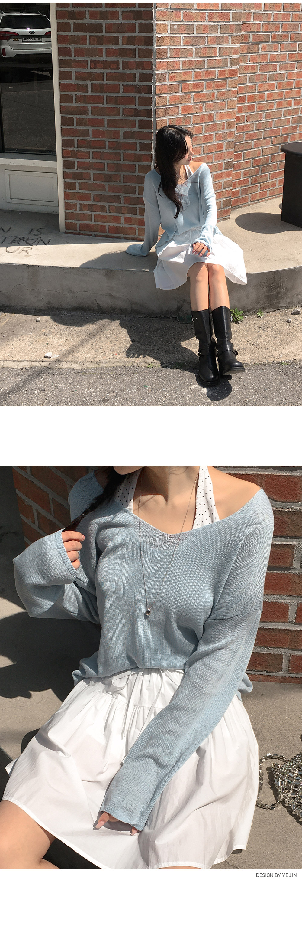 [손등덮는/데일리] 여리핏드롭V넥루즈니트티 (4color)