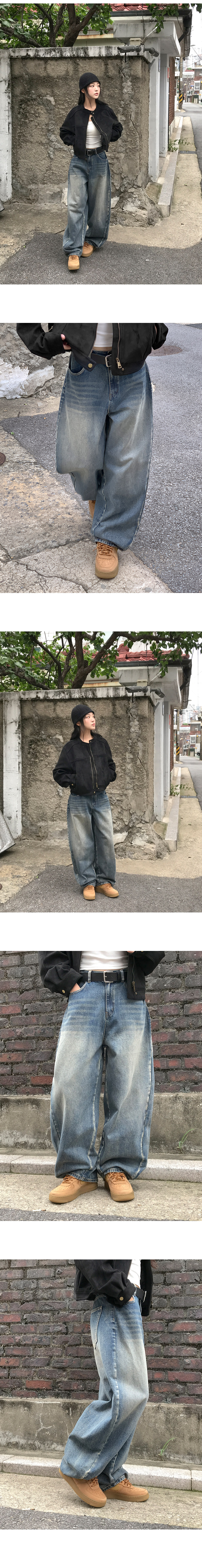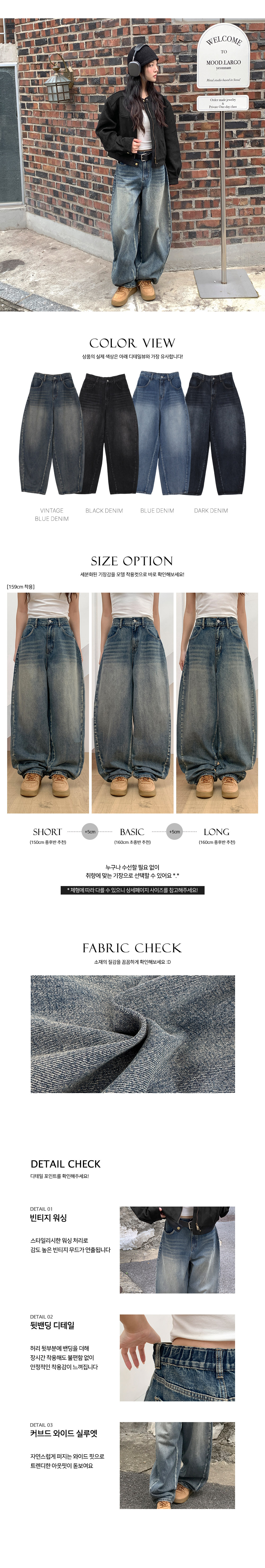 [숏,기본,롱/벌룬핏💙] 커브뒷밴딩와이드데님팬츠 (3color)