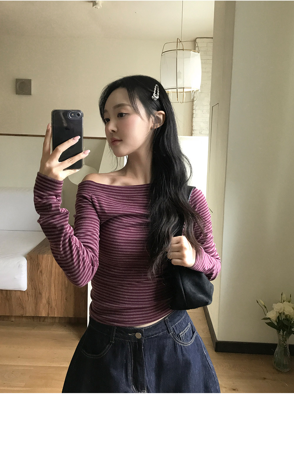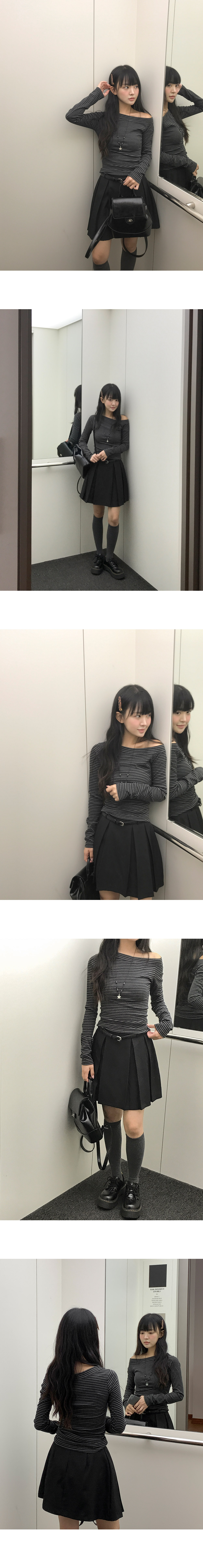 [여리핏/원오프] 원숄더단가라슬림핏긴팔티 (3color)