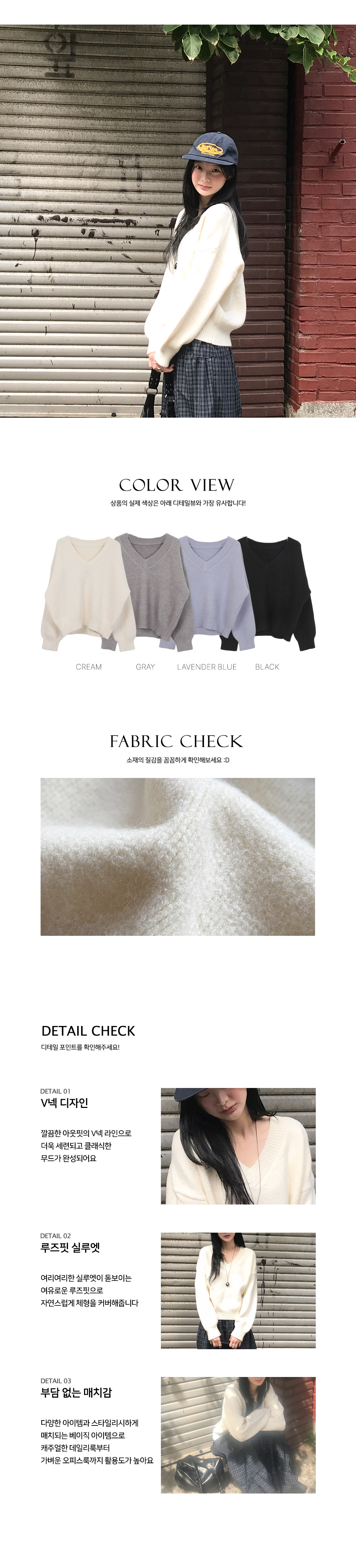 [여리핏/몽글폭닥🧸] 도톰울V넥루즈니트티 (4color)