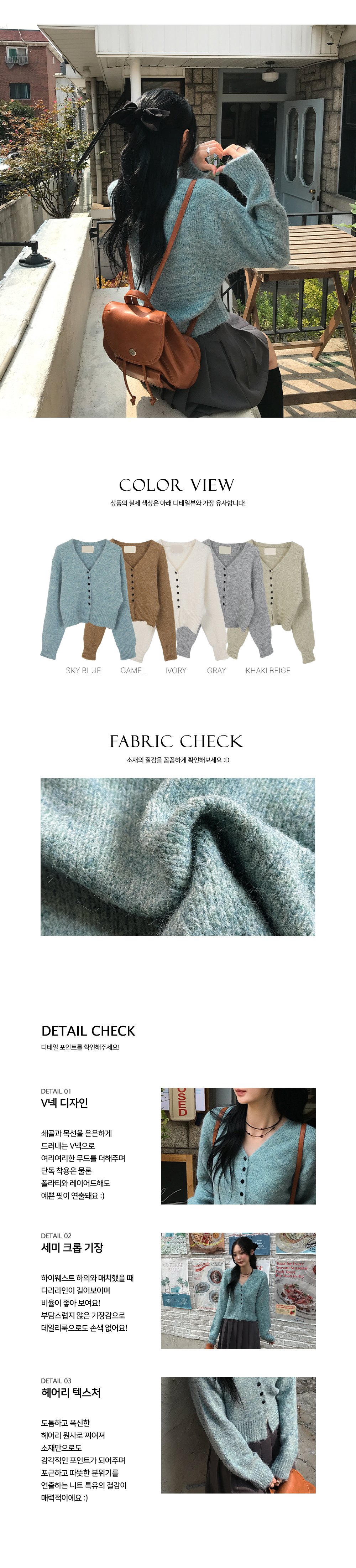 [가을아우터/포근🧸] 울헤어리V넥니트가디건 (5color)