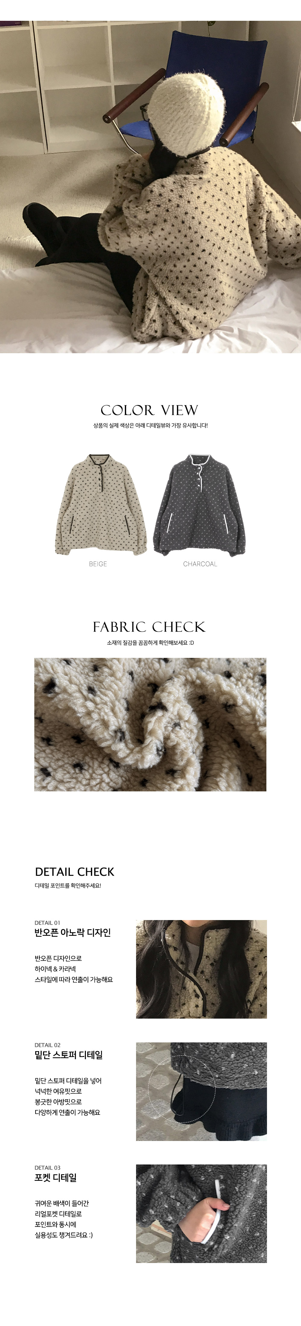 [뽀글이/보들보들🖤] 도트덤블반오픈아노락 (2color)