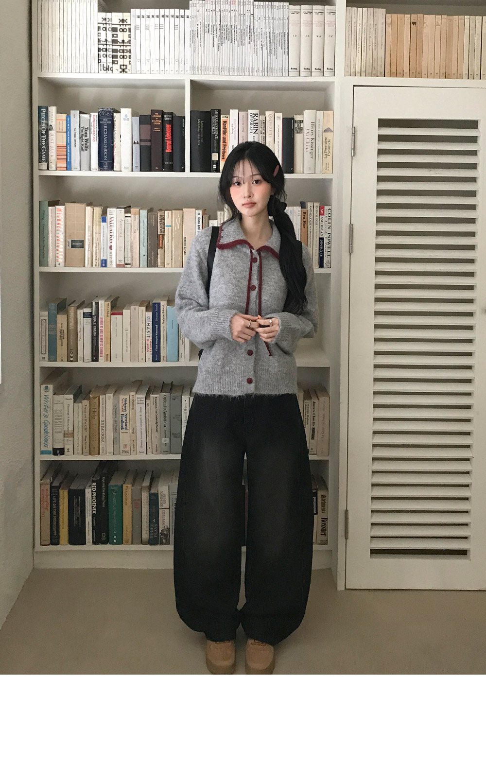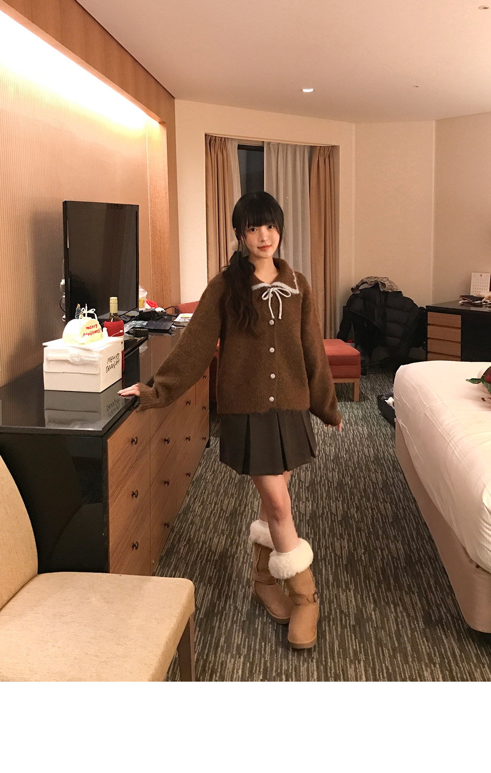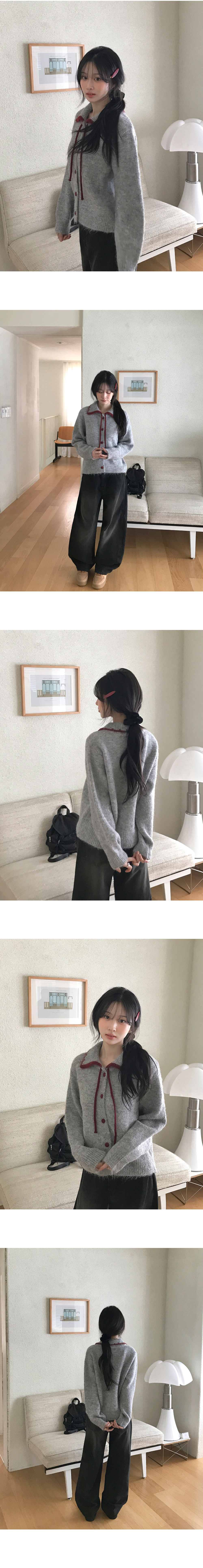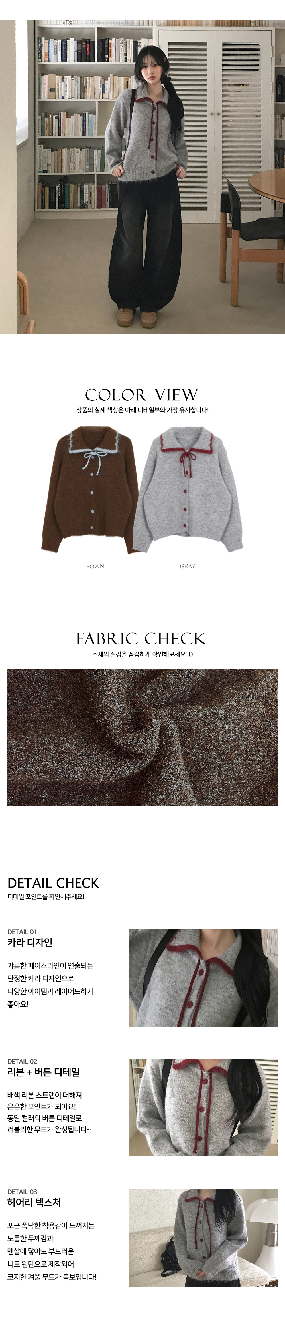 [폭닥핏/빈티지🤎] 헤어리울리본배색니트가디건 (2color)