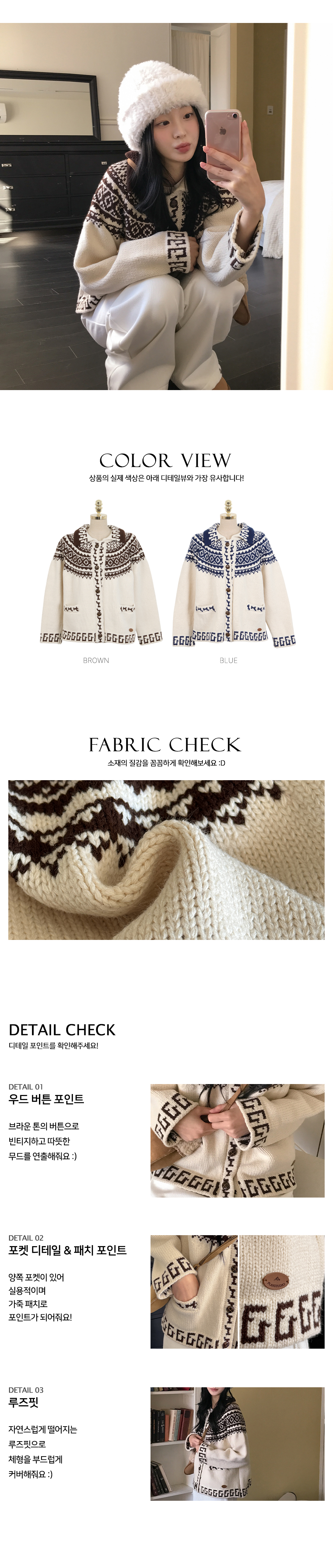 [겨울감성❄/고퀄리티] 울노르딕카라니트가디건 (2color)