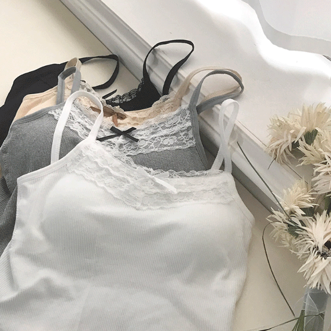 [캡내장/여리슬림핏🎀] 리본레이스크롭캡나시티 (4color)