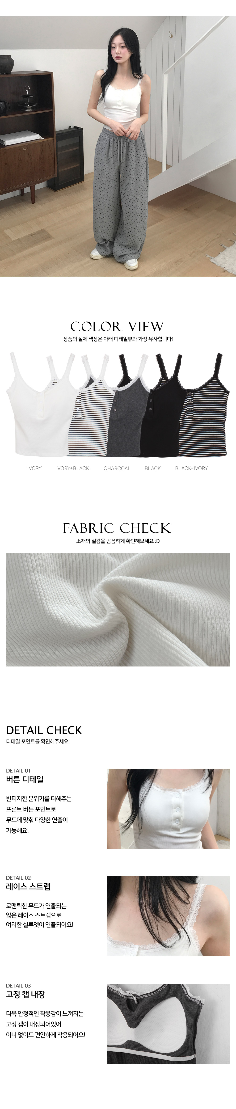 [캡고정/부드러운원단💭] 레이스반버튼골지캡나시티 (5color)
