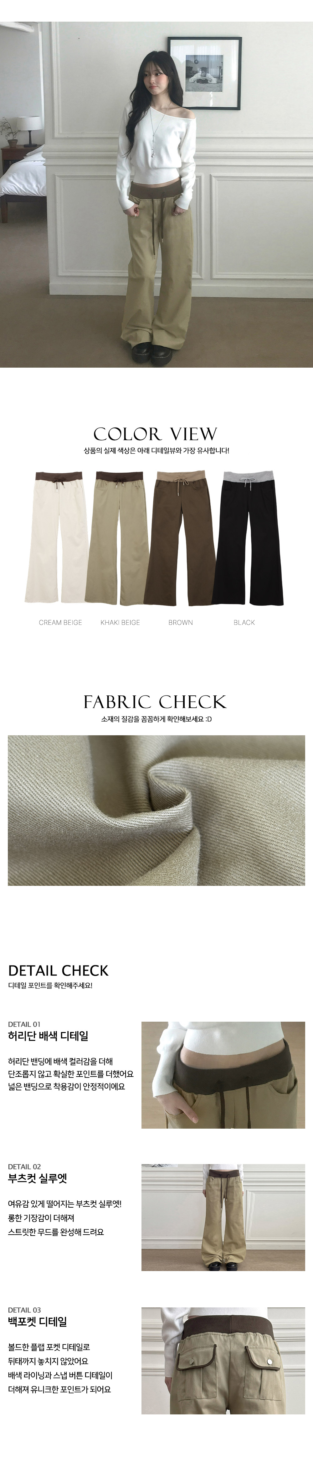 [백포켓/말라핏🤎] 시보리배색포켓부츠컷팬츠 (4color)