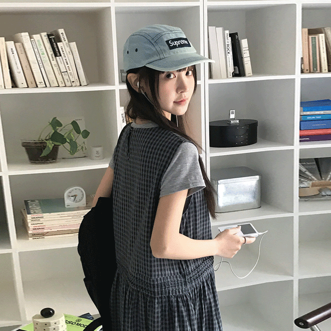 [레이어드템/봄코디🌸] 히피잔체크나시롱원피스